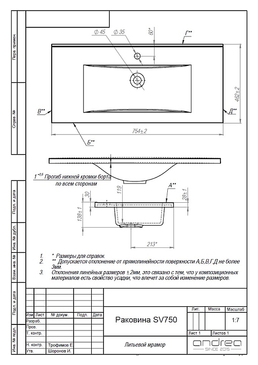 Раковина Andrea SV 750 популярной российской компании легко вписывается в интерьер любой ванной комнаты. Встраиваемая конструкция позволяет экономить место в ванной комнате для хранения туалетных принадлежностей. Изделие выполнено из искусственного мрамора, который отличается высокой прочностью, стойкостью к химическим веществам и высокой температуре, а также имеет гладкую поверхность, а верхний слой гелькоута образует декоративно защитное покрытие. В комплект поставки входит декоративная крышка. Особенности: