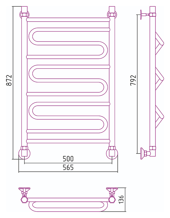 Полотенцесушитель водяной Стилье Аксиома-30 80х50 см без покрытия