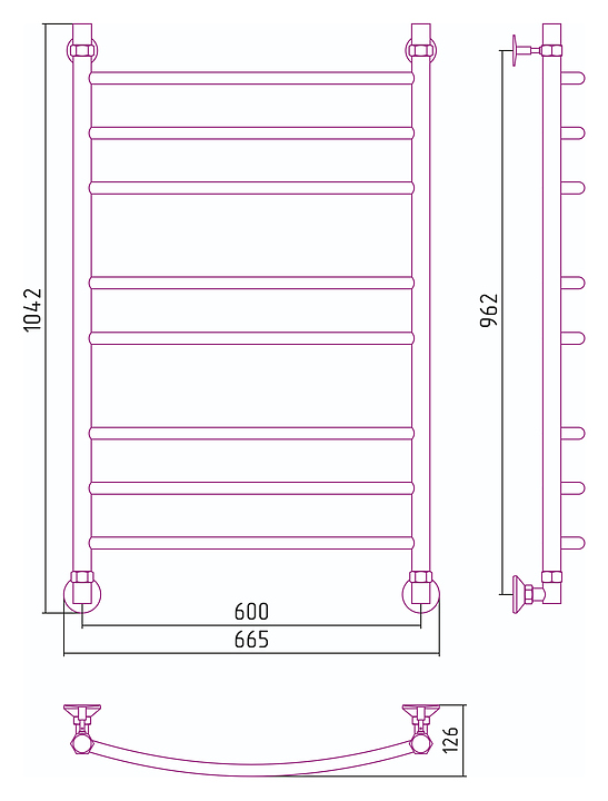 Полотенцесушитель водяной Стилье Аксиома-20 100х60 см без покрытия