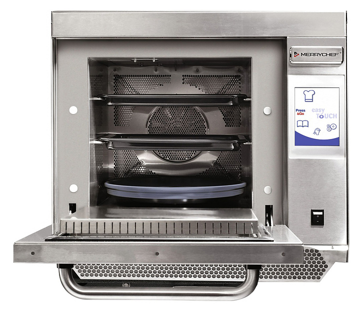 Печь комбинированная высокоскоростная Merrychef Еikon e3EE предназначена для выпечки хлебобулочных и кондитерских изделий, а также для приготовления штучных полуфабрикатов, блюд из рыбы, мяса и овощей на предприятиях общественного питания и торговли. Модель оснащена сенсорной панелью управления ЕasyTouch с пиктограммами и поворотной платформой для быстрого равномерного подогрева. Оборудование выполнено из нержавеющей стали. Особенности: