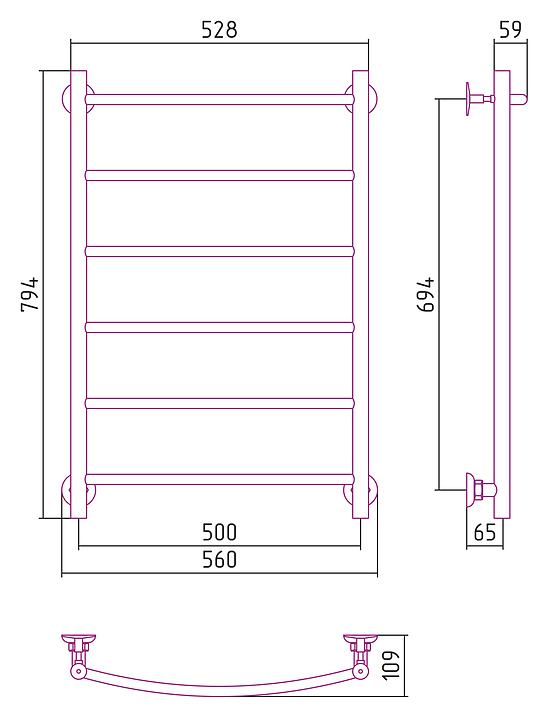 Полотенцесушитель водяной Стилье Версия-Н2 (6) Г 18 80х50 см белый