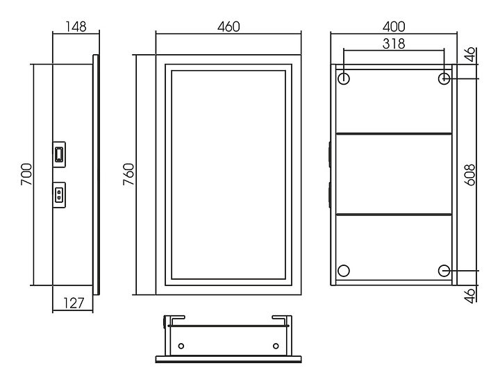 Зеркальный шкаф Silver Mirrors Hamburg-BLACK LED-00002667 дополнит интерьер ванной комнаты. Благодаря подвесной конструкции изделие не занимает много места, что экономит пространство и облегчает уборку. Модель оснащена 2 полочками внутри, встроенной в нижнюю часть корпуса розеткой, светодиодной подсветкой с диммером и механическим выключателем. Корпус выполнен из ЛДСП, фасад - из пластика. Дополнительные характеристики: