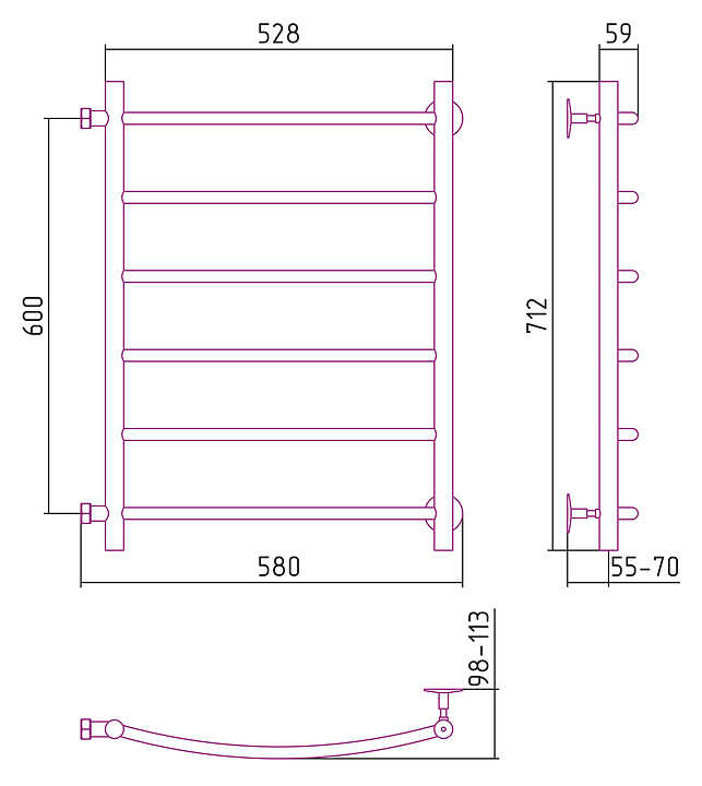 Полотенцесушитель водяной Стилье Версия-Б2 (6) Г 18 60х50 см белый