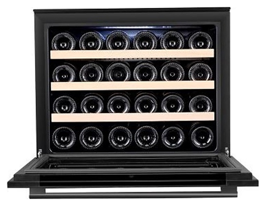 Винный шкаф Vinosafe VSC24BM предназначен для хранения при оптимальных условиях бутилированного вина различных сортов в барах, ресторанах, специализированных магазинах, подсобных складских помещениях, а также домашних условиях. Модель оснащена монотемпературной холодильной камерой, откидной дверью на скрытых внутренних петлях, длинной горизонтальной рукояткой, прозрачным обзорным остеклением, внешней сенсорной панелью управления и цифровым дисплеем. Корпус и рукоятка выполнены из металла с антикоррозийным покрытием черного цвета, полки – из массива дуба с металлической окантовкой фасада. В комплект поставки входят 3 полки с направляющими для размещения бутылок и инструкция по эксплуатации. Особенности: