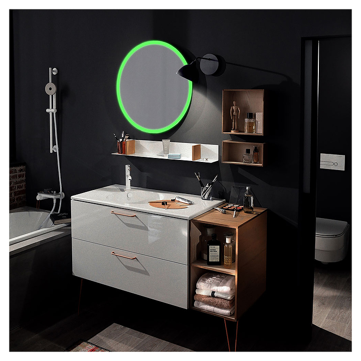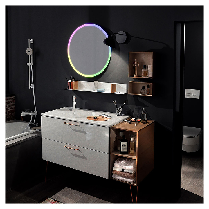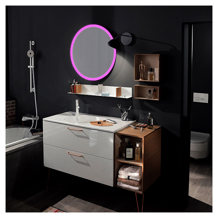 Зеркало Silver Mirrors Perla neo-RGB LED-00002610 дополнит интерьер ванной комнаты. Благодаря подвесной конструкции модель не занимает много места, что позволяет экономить пространство в небольшой ванной комнате, а также облегчает уборку. Зеркало оснащено RGB-подсветкой, сенсорным выключателем с функцией плавного диммирования и запоминанием последнего значения. Короткие касания светящейся области включают и выключают подсветку, длительное касание меняет яркость свечения. Изделие выполнено из стекла высшего качества M0, которое отличается влагостойкостью и минимальными оптическими искажениями. Дополнительные характеристики: