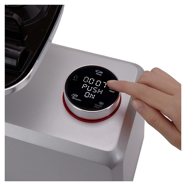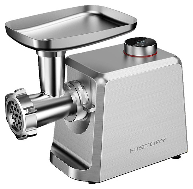 Мясорубка HiSTORY IMG-XD420 используется в частных домах и квартирах для измельчения мяса и рыбы при производстве фарша. Модель оснащена LCD-дисплеем и ножками на присосках для максимальной устойчивости. Корпус, лоток и насадки выполнены из литого аллюминия, комплектующие - из металла, ножи и диски - из нержавеющей стали. В комплект поставки входят: лоток с крышкой, толкатель, насадка для кеббе, насадка для колбасок, диск 5 мм и диск 8 мм. Особенности: