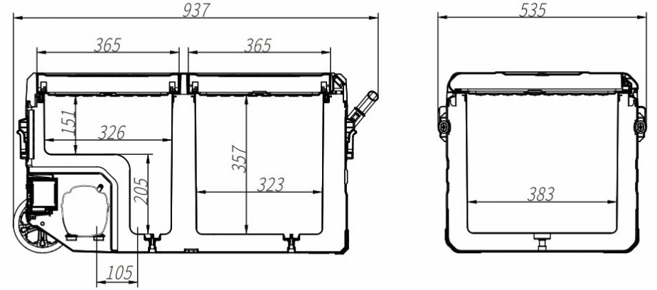 Переносной автохолодильник Alpicool TWW75 предназначен для охлаждения и глубокой заморозки, хранения и транспортировки продуктов питания и напитков в легковых и грузовых автомобилях, автодомах, специальной технике, лодках, катерах, яхтах, других видах транспорта. Модель оснащена 2 независимыми камерами, электронным термостатом, разъёмом USB, светодиодным внутренним освещением, 2 корзинами для продуктов, 2 колесами и телескопической ручкой. Корпус выполнен из пластика, теплоизоляция - из полиуретановой пены высокой плотности. Особенности: