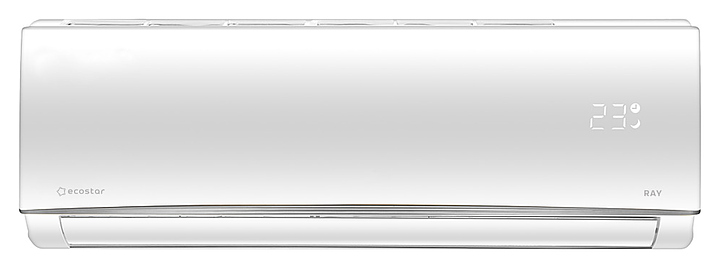 Настенная сплит-система EcoStar KVS-RAY09STсерии RAY используется для создания максимально кофмортных условий микроклимата в жилых, офисных и коммерческих помещениях. Модель состоит из внутреннего блока KVS-RAY09ST/IN и наружного блока KVS-RAY09ST/OUT. Наружный блок оснащен защитными вентиляционной решеткой и крышкой для вентилей, внутренний блок – воздухозаборной решеткой, откидной фронтальной крышкой, подвижной горизонтальной заслонкой, электронным блоком управления и дисплеем скрытого типа с проецируемой на фронтальную панель индикацией, пульт – информативным жидкокристаллическим дисплеем и кнопочной клавиатурой. Облицовка внутреннего блока выполнена из пластика с поверхностью белого цвета, корпус пульта – из ударопрочного белого пластика, теплообменник наружного блока с антикоррозийным покрытием Blue Fin.