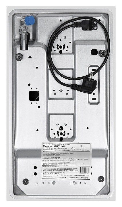 Газовая варочная панель HOMSair HGG321WH предназначена для приготовления в наплитной посуде большого спектра блюд в домашних условиях. Модель оснащена 2 высококачественными конфорками различной мощности, поворотными регуляторами и кабелем питания с вилкой. Корпус и рабочая поверхность выполнены из закаленного стекла, решетки - из чугуна, ручки управления - из пластика. В комплект поставки входят сменные жиклеры для балонного газа. Особенности: