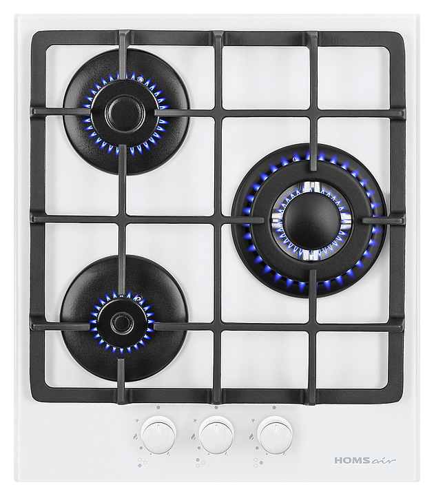 Газовая варочная панель HOMSair HGG433TGCWH предназначена для приготовления в наплитной посуде большого спектра блюд в домашних условиях. Модель оснащена 3 высококачественными конфорками различной мощности, поворотными регуляторами и кабелем питания с вилкой. Корпус и рабочая поверхность выполнены из закаленного жаропрочного стекла, решетки - из чугуна, ручки управления - из пластика с хромированной крышкой. В комплект поставки входят сменные жиклеры для балонного газа. Особенности: