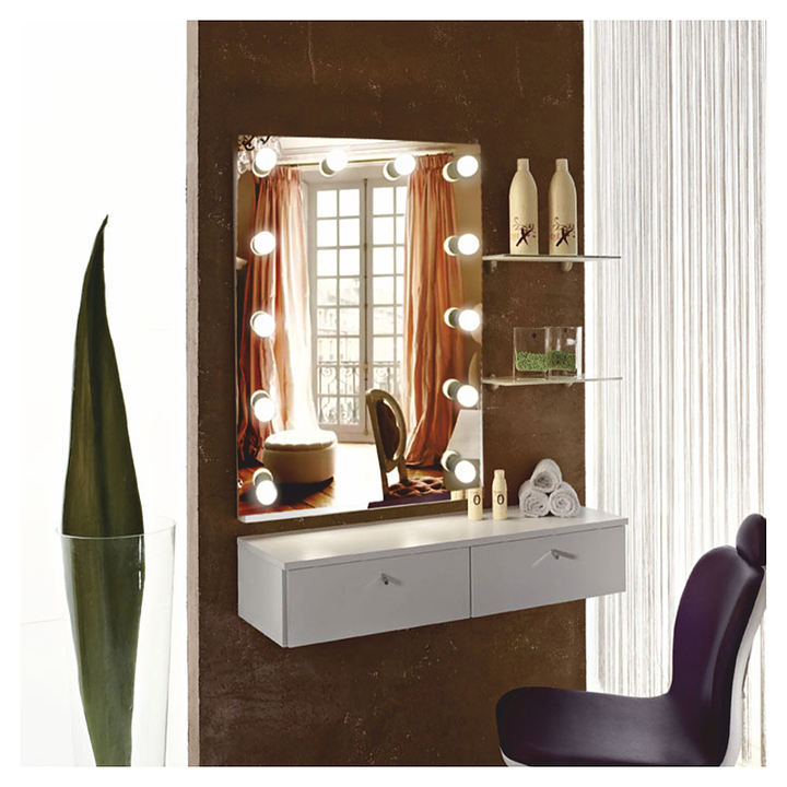 Зеркало Silver Mirrors Бриджит используется для создания оптимального освещения при нанесении макияжа. Модель оснащена отверстиями для лампочек. Лампочки в комплект поставки не входят. Дополнительные характеристики: