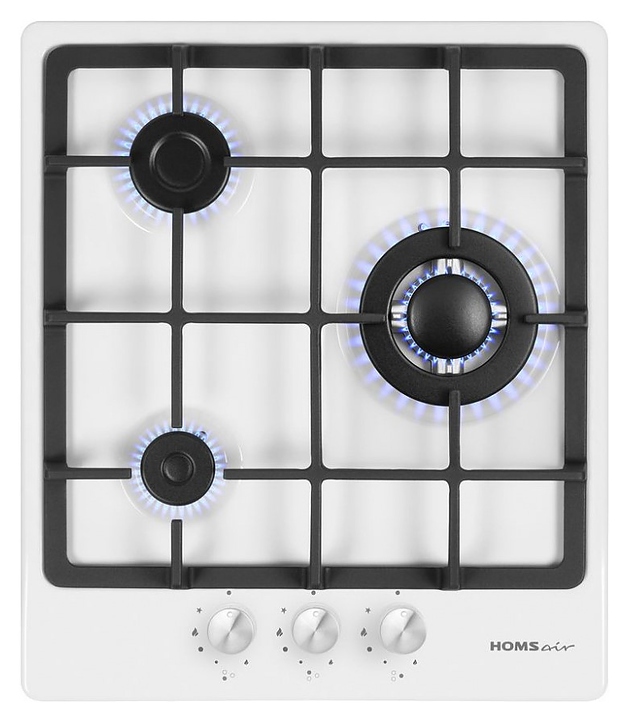 Газовая варочная панель HOMSair HGE433TGCWH предназначена для приготовления в наплитной посуде большого спектра блюд в домашних условиях. Модель оснащена 3 высококачественными конфорками различной мощности, поворотными регуляторами и кабелем питания с вилкой. Корпус выполнен из металла, рабочая поверхность - из эмали, решетки - из чугуна, ручки управления - из пластика с хромированной крышкой. В комплект поставки входят сменные жиклеры для балонного газа. Особенности: