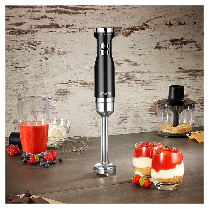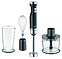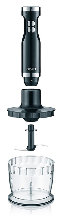 Погружной блендер Graef HB 502 предназначен для приготовления овощных пюре, смузи, зеленых коктейлей, муссов и кремов в частных домах и квартирах. Модель оснащена регулятором скорости и ножом с 4 лезвиями с защитой от брызг. Корпус выполнен из высококачественного пластика, погружная часть и ножи - из нержавеющей стали, чаша для взбивания - из пластика, не содержащего ВРА. Комплектация: