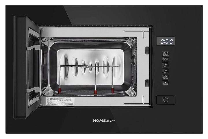 Встраиваемая микроволновая печь HOMSair MOB205GB предназначена для приготовления пищи, подогрева готовых блюд и ингридиентов, а также размораживания полуфабрикатов в домашних условиях. Модель оснащена сенсорной панелью управления с дисплеем, таймером и цифровыми часами. Корпус выполнен из металла, камера - из нержавеющей стали AISI 304, передняя панель - из стекла. В комплект поставки входят вращающееся кольцо, стеклянный поддон, решётка для гриля, инструкция по эксплуатации и комплект для установки. Особенности: