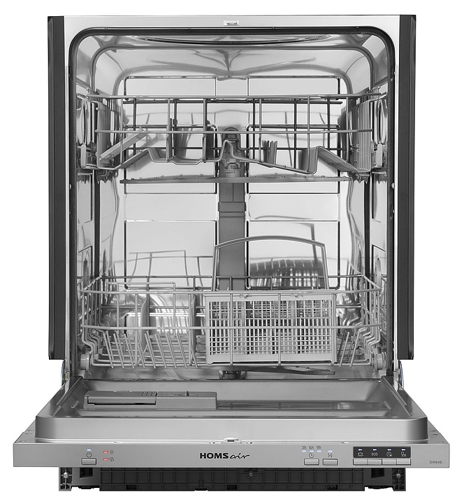 Посудомоечная машина HOMSair DW64E используется в частных домах, квартирах, отелях и офисах для гигиенической обработки и последующей сушки тарелок, стаканов, чашек, столовых приборов и другой посуды. Модель оснащена электронной панелью управления. Корпус выполнен из металла. В комплект поставки входят съемная корзина для столовых приборов, сливной и заливной шланг, воронка для соли и держатель для шланга. Программы мойки:
