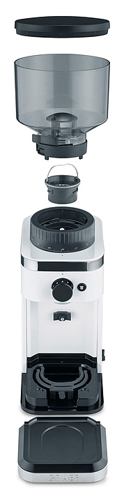 Кофемолка Graef CM 501 предназначена для получения молотого кофе из зерен в частных домах и квартирах. Модель оснащена бункером для кофейных зерен и отсеком для хранения аксессуаров. Корпус выполнен из пластика со вставками из нержавеющей стали, конические жернова - из нержавеющей стали. В комплект поставки входят контейнер для молотого кофе, 2 держателя портафильтра, воронка и щеточка для очистки. Особенности: