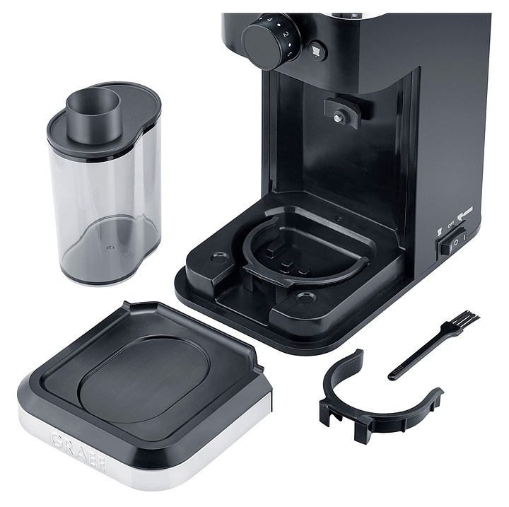 Кофемолка Graef CM 502 предназначена для получения молотого кофе из зерен в частных домах и квартирах. Модель оснащена бункером для кофейных зерен и отсеком для хранения аксессуаров. Корпус выполнен из пластика со вставками из нержавеющей стали, конические жернова - из нержавеющей стали.