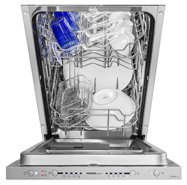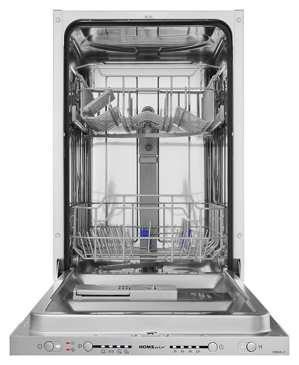 Посудомоечная машина HOMSair DW44L-2 используется в частных домах, квартирах, отелях и офисах для гигиенической обработки и последующей сушки тарелок, стаканов, чашек, столовых приборов и другой посуды. Модель оснащена электронной панелью управления. Камера выполнена из нержавеющей стали. В комплект поставки входят сливной и заливной шланги, воронка для соли и держатель для шланга. Программы мойки:
