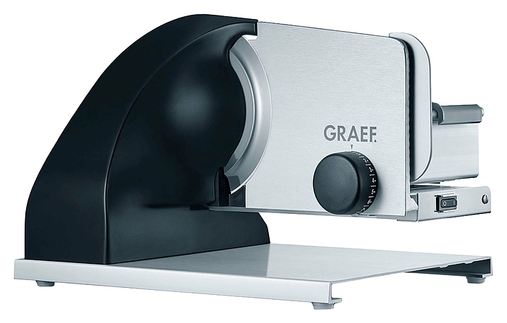 Ломтерезка Graef SKS 902 предназначена для нарезки хлеба, мяса, сыра и других видов продуктов в квартирах, частных домах, отелях и офисах. Модель оснащена бесшумным конденсаторным двигателем и ножом с гладким лезвием. Корпус выполнен из металла, нож - из цельной закаленной нержавеющей стали. В комплект поставки входит лоток из нержавеющей стали для сбора нарезанных продуктов. Особенности: