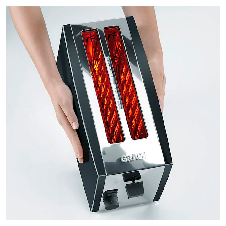 Тостер Graef TO 102 предназначен для обжаривания ломтиков тостового хлеба в частных домах, квартирах, отелях и офисах. Модель оснащена 2 длинными слотами, подъемным механизмом для извлечения хлеба и выдвижным лотком для крошек. Теплоизолированный корпус выполнен из нержавеющей стали и алюминия. Особенности: