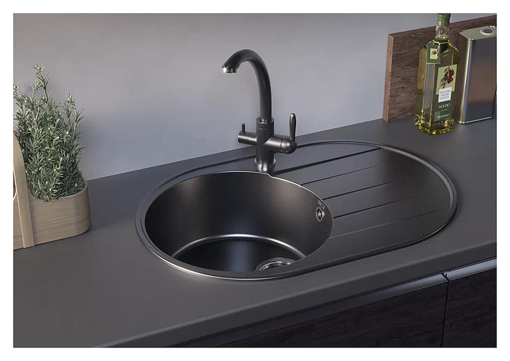 Мойка ULGRAN Quartz Nora 750-05 предназначена для рационального планирования рабочего места на кухне. Круглая чаша отличается простым уходом благодаря отсутствию углов, в которых скапливается грязь. Крыло-сушилка с желобками служит подставкой для посуды и продуктов. Мойка поглощает шум от льющейся воды и гремящей посуды. Изделие выполнено из кварцевого композита, который гарантирует безопасность для здоровья человека и окружающей среды, выдерживает колебания температуры, имеет стойкость к бытовым ударам, истиранию и царапинам, к пищевым и химическим красителям. В комплект поставки входят сливная арматура и гофротруба. Особенности: