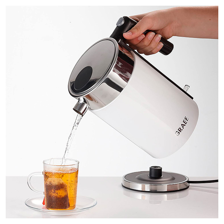Чайник Graef WK 61 предназначен для нагрева и кипячения воды при приготовлении чая и кофе в частных домах, квартирах, отелях и офисах. Модель оснащена двойными стенками и съемным фильтром от накипи. Корпус снаружи выполнен из пластика, изнутри - из нержавеющей стали, фильтр - из нержавеющей стали. Особенности: