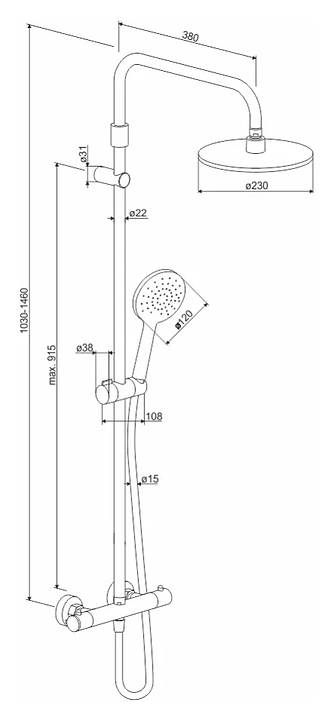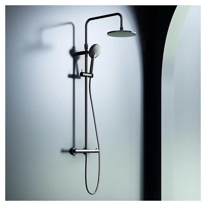 Душевая стойка Damixa Option DX218091300 используется в ванных комнатах. Модель оснащена круглым тропическим верхним душем, круглой ручной лейкой с душевым шлангом и держателем лейки, а также термостатическим картриджем, обеспечивающим поддержание необходимой температуры в независимости от давления воды. Изделие выполнено из латуни, которая отличается прочностью, долговечностью и устойчивостью к перепадам температур. В комплект поставки входят смеситель для душа, штанга, верхний душ, ручной душ, шланг для ручного душа и набор для подключения. Особенности: