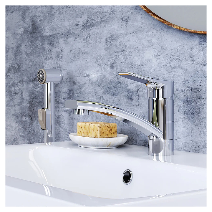 Смеситель для раковины Damixa Origin Bit 770230000 с гигиеническим душем, хром