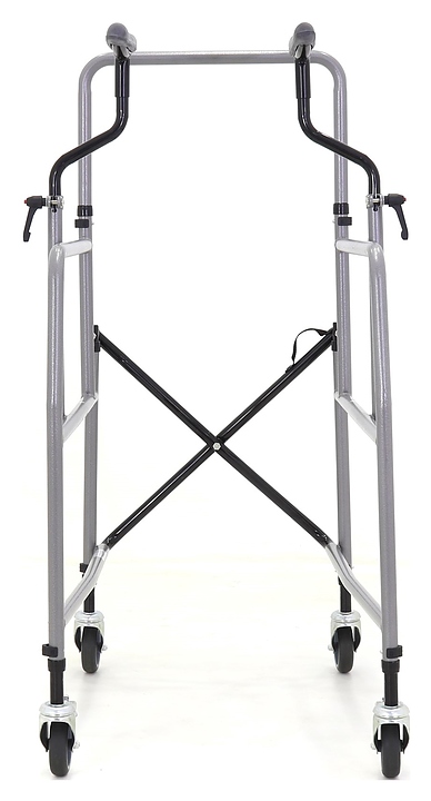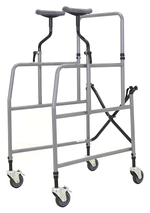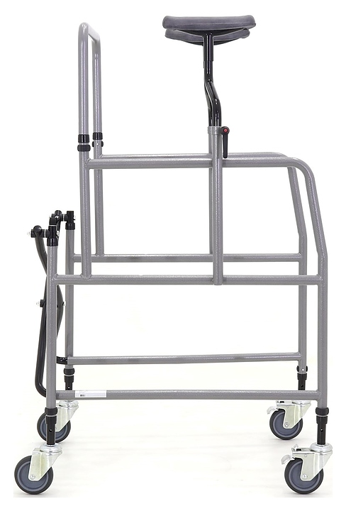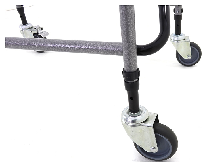 Ходунки Med-Mos 184.00.20 используются в учреждениях здравоохранения, реабилитационных центрах, в домашних условиях и на улице для поддержки при вставании и ходьбе пациентов с нарушениями опорно-двигательного аппарата и в процессе реабилитации после травм и хирургических операций на нижних конечностях. Модель оснащена выдвижными подмышечными опорами, 4 самоориентирующимися колесами, задние со стояночным тормозом. Сварная рама выполнена из стальной трубы, покрытой ударопрочной полимерной эмалью. Дополнительные характеристики: