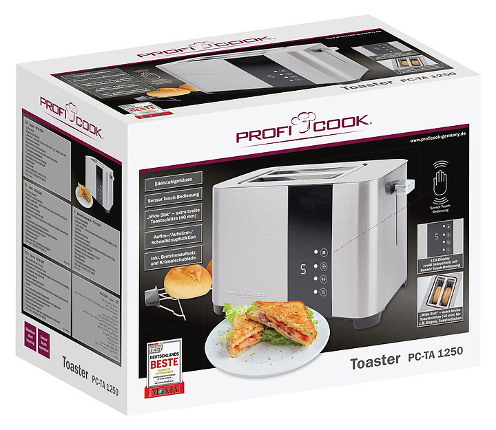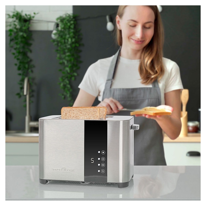 Тостер Profi Cook PC-TA 1250 предназначен обжаривания ломтиков тостового хлеба в частных домах, квартирах, отелях и офисах. Модель оснащена сенсорными кнопками управления с подсветкой, съемной решеткой для булочек и прорезиненными ножками. Корпус выполнен из нержавеющей стали. Особенности: