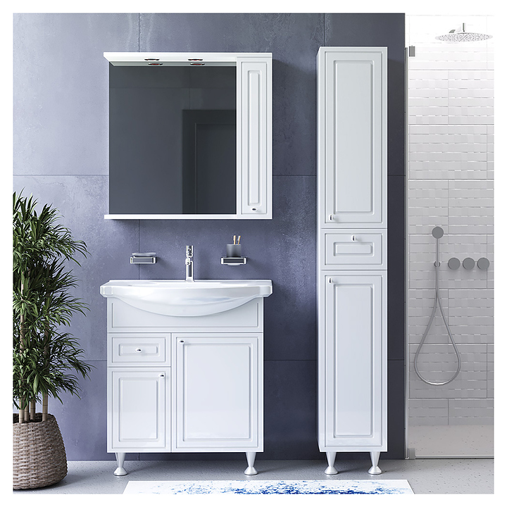 Зеркальный шкаф Damixa Palace One M41MPR0751WG выполнено в современном стиле и отлично дополнит интерьер любой ванной комнаты. Изделие является частью коллекции Palace One. Благодаря подвесной конструкции модель не занимает много места, что позволяет экономить пространство в небольшой ванной комнате, а также облегчает уборку. Модель оснащена зеркальным полотном, открытой полкой, отделением с распашной дверь и 2 стеклянными полками внутри, а также подсветкой. Корпус изделия выполнен из ЛДСП. Особенности: