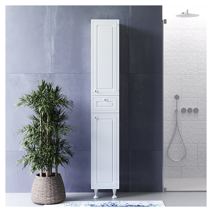 Шкаф-пенал Damixa Palace One M41CSR0303WG выполнен в современном стиле. Благодаря конструкции на ножках изделие не занимает много места, что позволяет экономить пространство в небольшой ванной комнате, а также облегчает уборку. Модель оснащена закрытым отделением с распашной дверцей, за которой расположены полки для хранения ванных принадлежностей, выдвижным ящиком и отделение с бельевой корзиной. Корпус изделия выполнен из ЛДСП с покрытием ламинатом, фасад - из МДФ с покрытием эмалью. Модель является частью коллекции Palace One. Особенности: