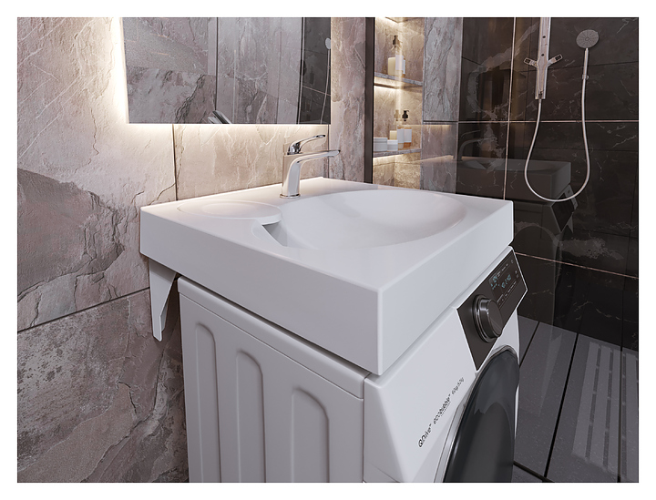 Раковина ULGRAN Paola Liguria 600 от популярного бренда дополнит интерьер ванной комнаты. Модель предназначена для установки над стиральной машиной, что экономит пространство в помещении. Раковина оснащена широкой задней поверхностью для размещения смесителя и аксессуаров. Изделие выполнено из прочного износостойкого литьевого мрамора и имеет специальное защитное покрытие гелькоут, которое сохраняет глянцевый блеск и цвет, выдерживает перепады температур и устойчив к коррозии. В комплект поставки входят выпуск, декоративный элемент, 2 кронштейна и крепежи. Особенности: