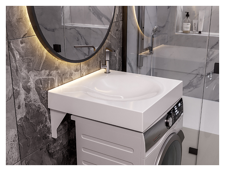 Раковина ULGRAN Paola Sergio 600 от популярного бренда дополнит интерьер ванной комнаты. Модель предназначена для установки над стиральной машиной, что экономит пространство в помещении. Изделие выполнено из прочного износостойкого литьевого мрамора и имеет специальное защитное покрытие гелькоут, которое сохраняет глянцевый блеск и цвет, выдерживает перепады температур и устойчив к коррозии. В комплект поставки входят выпуск, декоративный элемент, 2 кронштейна и крепежи. Особенности: