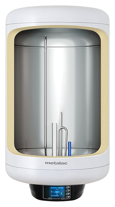 Электрический накопительный водонагреватель Metalac Sirius MB P120 Wi используется в местных системах водоснабжения для постоянного автономного обеспечения горячей водой одной или нескольких точек водоразбора таких как санитарные узлы, кухни в жилых и загородных частных домах, а также других бытовых и хозяйственных объектах. Модель оснащена внутренним баком, погружным трубчатым электронагревателем (ТЭНом) с фланцевым креплением, резьбовыми штуцерами для подвода холодной и выхода горячей воды, кабелем питания с вилкой и сенсорной панелью управления с цветным дисплеем. Вертикально ориентированный корпус цилиндрической формы выполнен из металла с антикоррозийным покрытием белого цвета, внутренний бак – из высококачественной медицинской нержавеющей стали AISI 316L с высоким содержанием хрома, никеля и молибдена, крышка – из черного пластика, ТЭН – из нержавеющей стали. В комплект поставки входят монтажный кронштейн, заводская упаковка, инструкция по эксплуатации и гарантийный талон. Особенности: