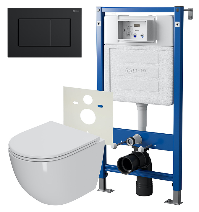 Унитаз подвесной с инсталляцией и панелью смыва Point PN48058BM белый, черный матовый