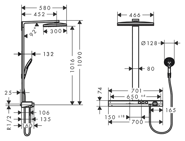 Стойка душевая Hansgrohe HG Rainmaker Select 460 2jet 27109400 с термостатом, белый, хром