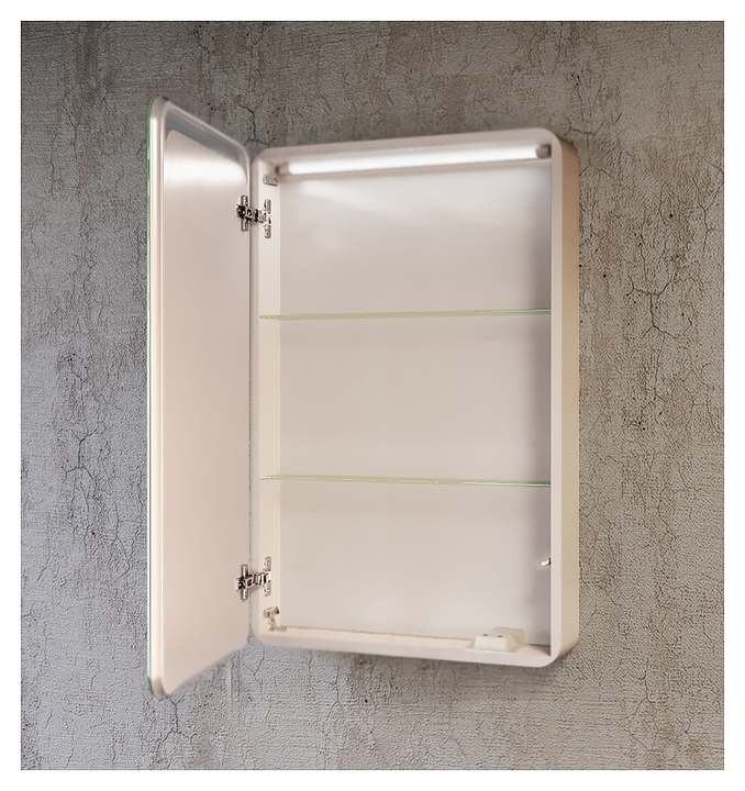 Зеркальный шкаф Raval Pure 60 дополнит интерьер ванной комнаты. Благодаря подвесной конструкции изделие не занимает много места, что экономит пространство и облегчает уборку. Модель имеет универсальную ориентацию и оснащена люминесцентной подсветкой, распашной дверцей и 2 полками внутри. Корпус выполнен из влагостойкой МДФ в матовой пленке, фасад - из МДФ с глянцевым покрытием. Дополнительные характеристики: