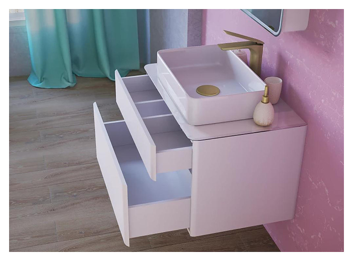 Тумба под раковину Raval Pure 80 дополнит интерьер ванной комнаты. Благодаря подвесной конструкции модель не занимает много места, что позволяет экономить пространство и облегчает уборку. Тумба оснащена 2 выдвижными ящиками. Изделие выполнено из влагостойкой МДФ в глянцевой пленке. Раковина и смеситель в комплект поставки не входит. Дополнительные характеристики: