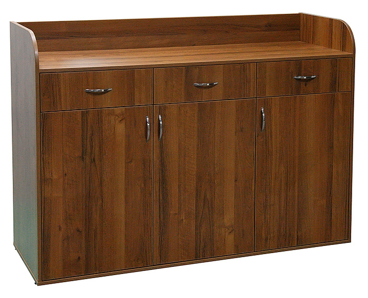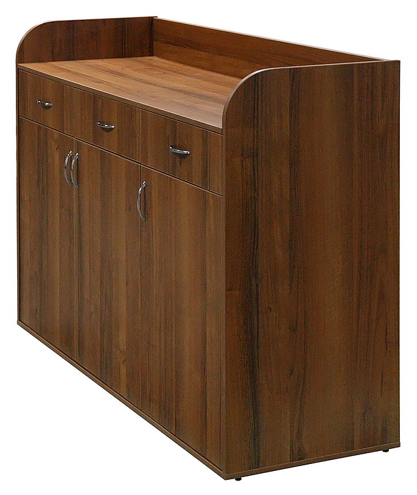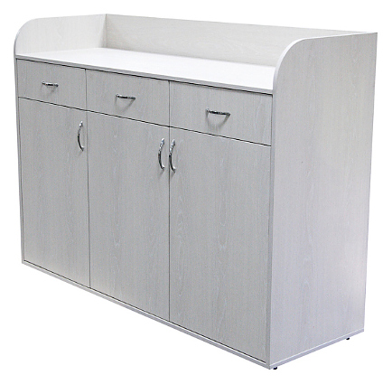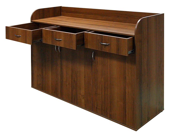 Станция официанта Клен 3 секции используется на предприятиях общественного питания для размещения кассового аппарата, временного хранения посуды и приборов, папок меню и счетов, подносов, столового текстиля, пепельниц, что ускоряет работу официантов - обслуживание и уборку столов. Модель оснащена выдвижными ящиками с шариковыми направляющими полного движения и фурнитурой ведущих мировых производителей. Изделие выполнено из ЛДСП толщиной 16 мм. Стандартные цвета: