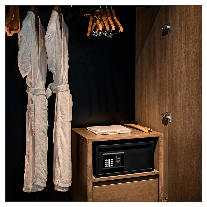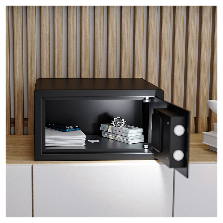 Сейф MEYVEL SF3-350-200 предназначен для безопасного хранения различных ценностей в гостиницах, отелях, офисах, квартирах и загородных домах. Модель оснащена электронной клавиатурой с синим дисплеем. Корпус выполнен из прочной стали и покрыт специальной износостойкой краской. Батарейки в комплект поставки не входят и приобретаются отдельно. Особенности: