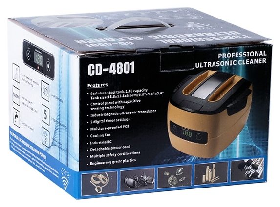 Ультразвуковая мойка CODYSON CD-4801 используется в салонах красоты, косметологических центрах, парикмахерских, маникюрных студиях, ремонтных мастеских и домашних условиях для быстрой и эффективной очистки, а также бактерицидной обработки при эксплуатации с растворами не агрессивных моющих и дезинфицирующих средств поверхностей рабочих инструментов, очков, ювелирных изделий, монет, столовых приборов и предметов личной гигиены. Принцип работы основан на эффекте акустической кавитации: под воздействием высокочастотных колебаний в жидкой среде резервуара образуется и схлопывается множество пузырьков, возникающие при этом процессе ударные волны разрушают области загрязнений. Модель оснащена съемной крышкой и сенсорной панелью управления с цифровым светодиодным дисплеем. Корпус выполнен из ударопрочного пластика, резервуар прямоугольного сечения – из высококачественной нержавеющей стали SUS304. В комплект поставки входят инструкция по эксплуатации, съемные кабель питания и решетчатая корзина для инструментов. Особенности: