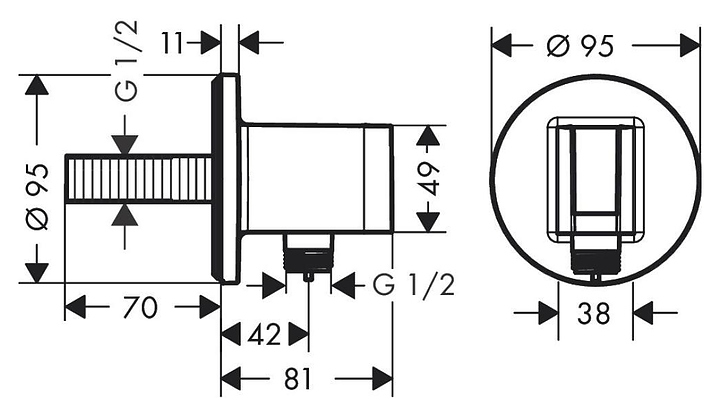 Шланговое подсоединение Hansgrohe HG Fixfit S 26888000 с держателем душа, хром