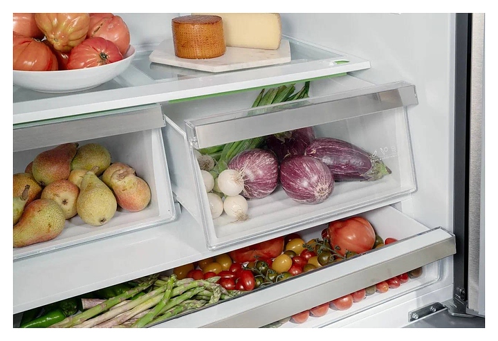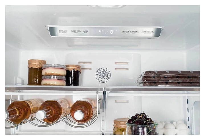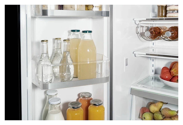 Холодильник Bertazzoni REF904FFNXTC предназначен для замораживания, охлаждения и кратковременного хранения скоропортящихся продуктов и напитков в частных домах, квартирах, офисах и отелях. Модель оснащена холодильной камерой с 4 регулируемыми, 1 стационарной основными полками и 6 боковыми полками, морозильной камерой с 2 ящиками, светодиодными лампами освещения, лотком для ручного льдогенератора, внутренней сенсорной панелью управления и ножками. Изделие выполнено из нержавеющей стали и имеет покрытие против отпечатков. Особенности: