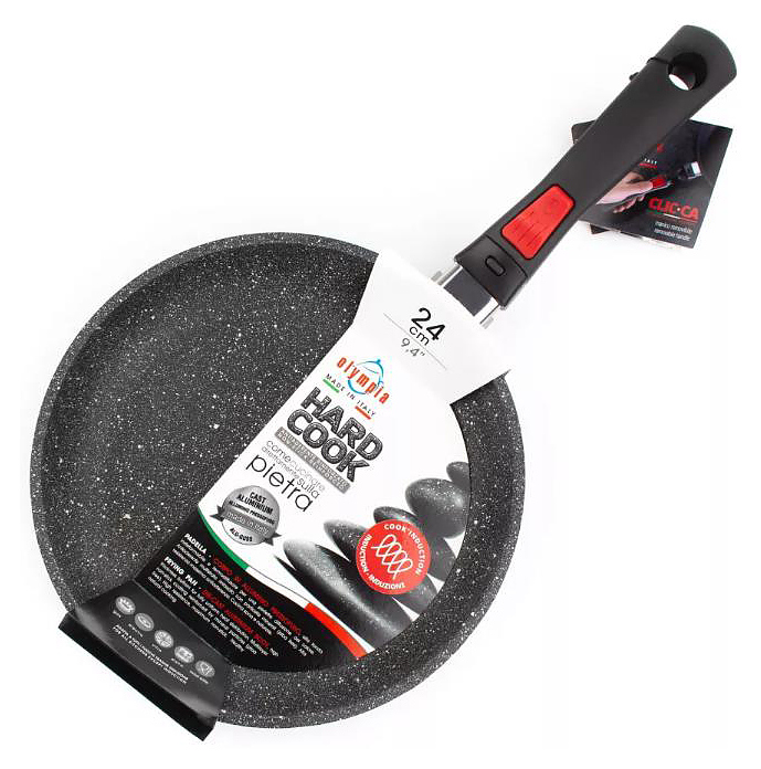 Сковорода Olympia 200.24INDC используется на предприятиях общественного питания, а также в домашних условиях для приготовления широкого спектра блюд на всех типах плит, включая индукционные. Модель оснащена съемной ручкой. Сковорода изготовлена из алюминия методом литья под высоким давлением холодным способом, ручка - из бакелита. Особенности: