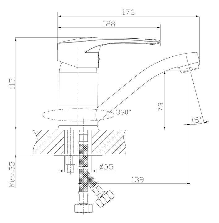 Смеситель для раковины Rossinka T40-22 предназначен для подачи горячей и холодной воды в ванных помещениях. Керамический картридж обеспечивает плавный ход рычага смесителя, контроль и точность при выборе напора и температуры воды. Аэратор уменьшает шум, снижает количество брызг и оснащен функцией легкой очистки. Изделие выполнено из высококачественной латуни, отличающейся прочностью, долговечностью и устойчивостью к перепадам температур, рукоятка - из металла, аэратор - из пластика. В комплект поставки входят 2 гибкие подводки и присоединительная группа для горизонтального крепления. Дополнительные характеристики: