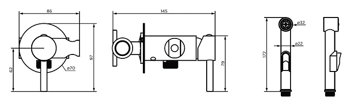 Гигиенический душ Dorff Logic D3075000 предназначен для проведения гигиенических процедур в туалетных комнатах. Модель оснащена керамическим картриджем, обеспечивающим плавный ход рычага смесителя, контроль и точность при выборе напора и температуры воды. Изделие выполнено из латуни, отличающейся прочностью, долговечностью и устойчивостью к перепадам температур. В комплект поставки входят смеситель, внутренняя часть, гигиеническая лейка, душевой шланг и настенный держатель для лейки. Особенности: