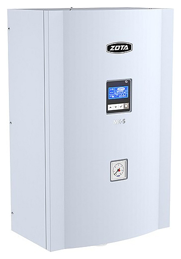 Электрический котел ZOTA MK-S-21 предназначен для автономного теплоснабжения жилых и производственных помещений площадью до 210 м2. Модель оснащена блок-ТЭНами специальной конструкции с пониженной ваттной нагрузкой из нержавеющей стали, датчиками температуры воды и воздуха, электронной панелью управления с жидкокристаллическим дисплеем, стабилизатором напряжения на блоке управления и автоматическим выключателем с независимым расцепителем и защитой от тока К3 до 6000 А. В комплект поставки входят тэновый электрокотел с силовым блоком, блок управления, расширительный мембранный бак, циркуляционный насос и группа безопасности. Для систем водоснабжения необходима установка обратного клапана (в комплект поставки не входит и приобретается отдельно). Особенности: