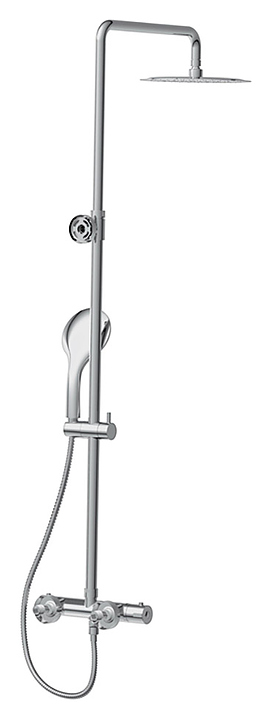 Душевая стойка Cersanit BRASKO 63066 используется в ванных комнатах. Модель оснащена круглыми верхним душем и ручной лейкой. Термостатический смеситель подает воду заданной температуры, что исключает ожоги. Лейка отличается легкой очисткой благодаря функции Easy Clean. Изделие выполнено из стали, которая отличается прочностью, долговечностью и устойчивостью к коррозии, шланг - в металлической оплетке. В комплект поставки входят тропический душ, лейка, стойка, душевой шланг и смеситель. Особенности: