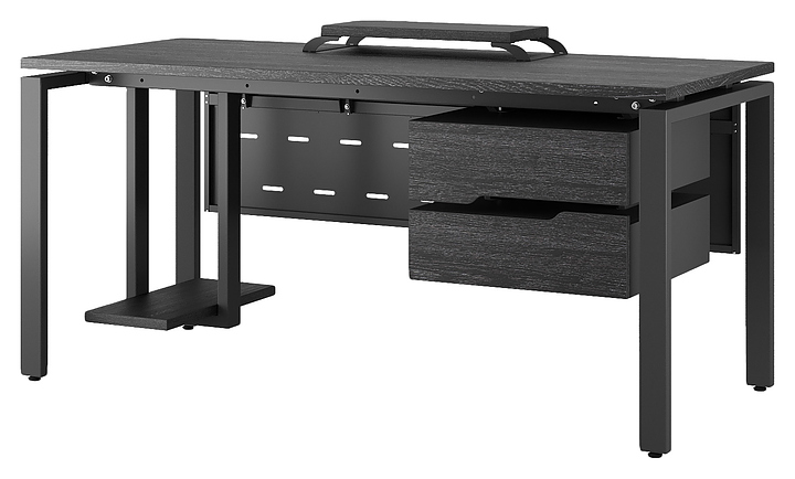 Офисный стол Кобор P-160/70 black/glazed используется в офисных помещениях и кабинетах руководителей. Модель оснащена П-образными опорами. Каркас выполнен из металла, выкрашенного в цвет черный муар (RAL9005), столешница – из ламинированной древесно-стружечной плиты (ЛДСП) цвета черный дуб (H3178 ST37). Опции (заказываются отдельно):